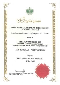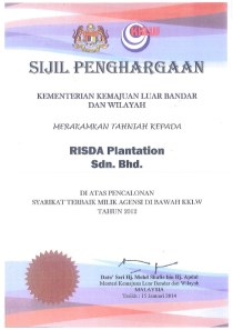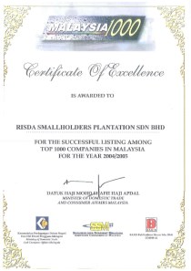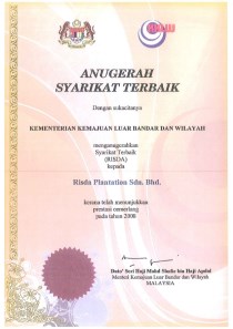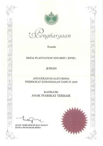SIJIL ANUGERAH KUALILTI RISDA PERINGKAT KEBANGSAAN 2009